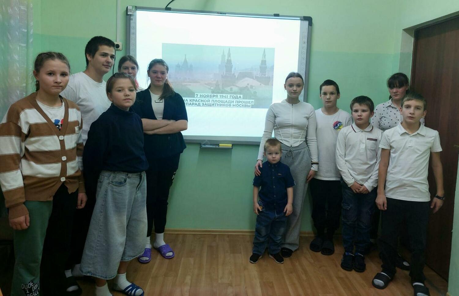 Воспитанники ознакомились со значимым эпизодом Великой Отечественной войны – парадом, состоявшимся 7 ноября 1941 года, который стал символом мужества и стойкости советского народа, несмотря на тяжелейшую ситуацию на фронте, воодушевил советских солдат и укрепил их веру в победу в битве за Москву. С целью более полного восприятия информации вниманию ребят были представлены слайды и видеоматериалы с архивной кинохроникой , повествующие о важности этого легендарного события, произошедшего в самый разгар тяжелых военных лет.