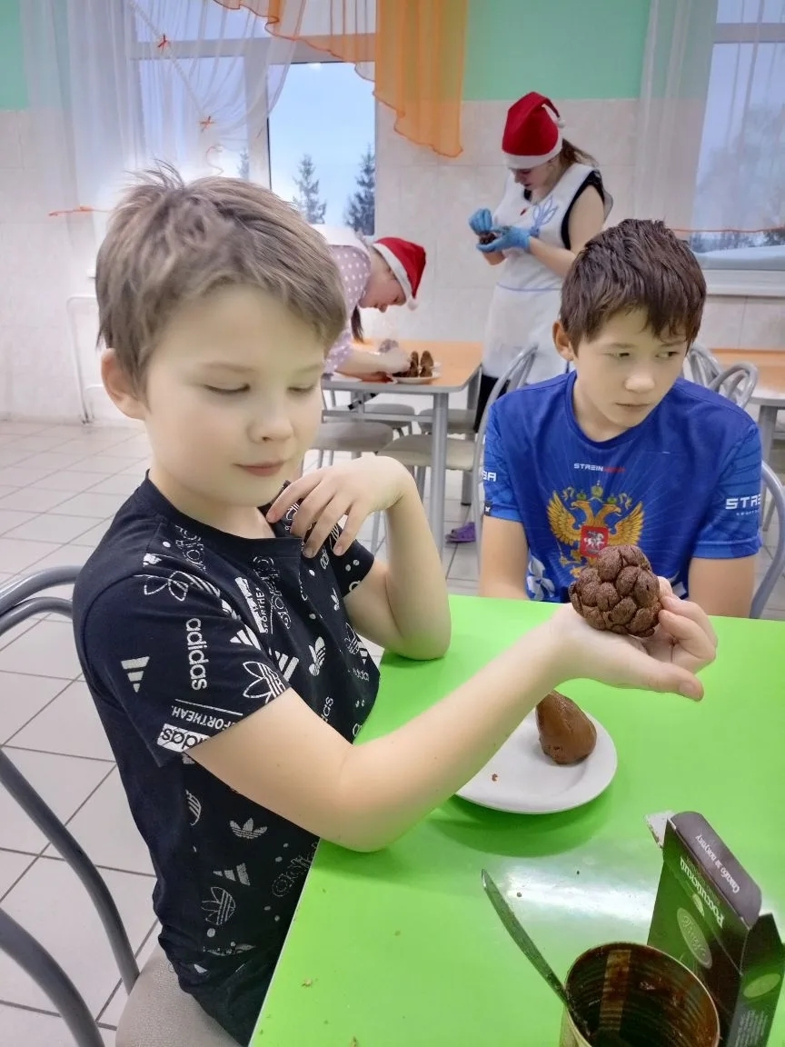 Под Новый год, 31 декабря, воспитанники нашего социально-реабилитационного центра для несовершеннолетних стали участниками увлекательного новогоднего квеста. В поисках заветного подарка им пришлось проявить смекалку, разгадывая разнообразные ребусы, загадки и головоломки. Успешно справившись с заданиями, ребята обнаружили под ёлочкой нечто особенное – набор ингредиентов для приготовления пирожного "Еловая шишка"! Этот сюрприз стал началом настоящего кулинарного приключения. На мастер-классе ребята с удовольствием взялись за дело, превращая ингредиенты в аппетитные угощения. Собственноручно приготовленные пирожные стали не только вкусным дополнением к новогоднему столу, но и источником позитивных эмоций от творчества и совместного дела!