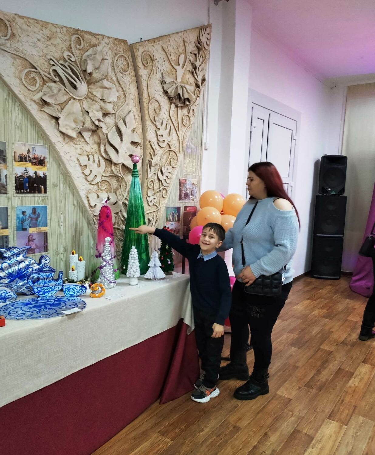 Пестерев Руслан, Гусельникова Ксюша и Стеблин Егор под руководством психологов подготовили инсценировку стихотворения Агнии Барто «Очки». Руслан также покорил зрителей своим номером «Факир». Кроме того, каждый из ребят представил зрителям свои уникальные поделки – новогодние елочки, выполненные из самых разнообразных материалов.