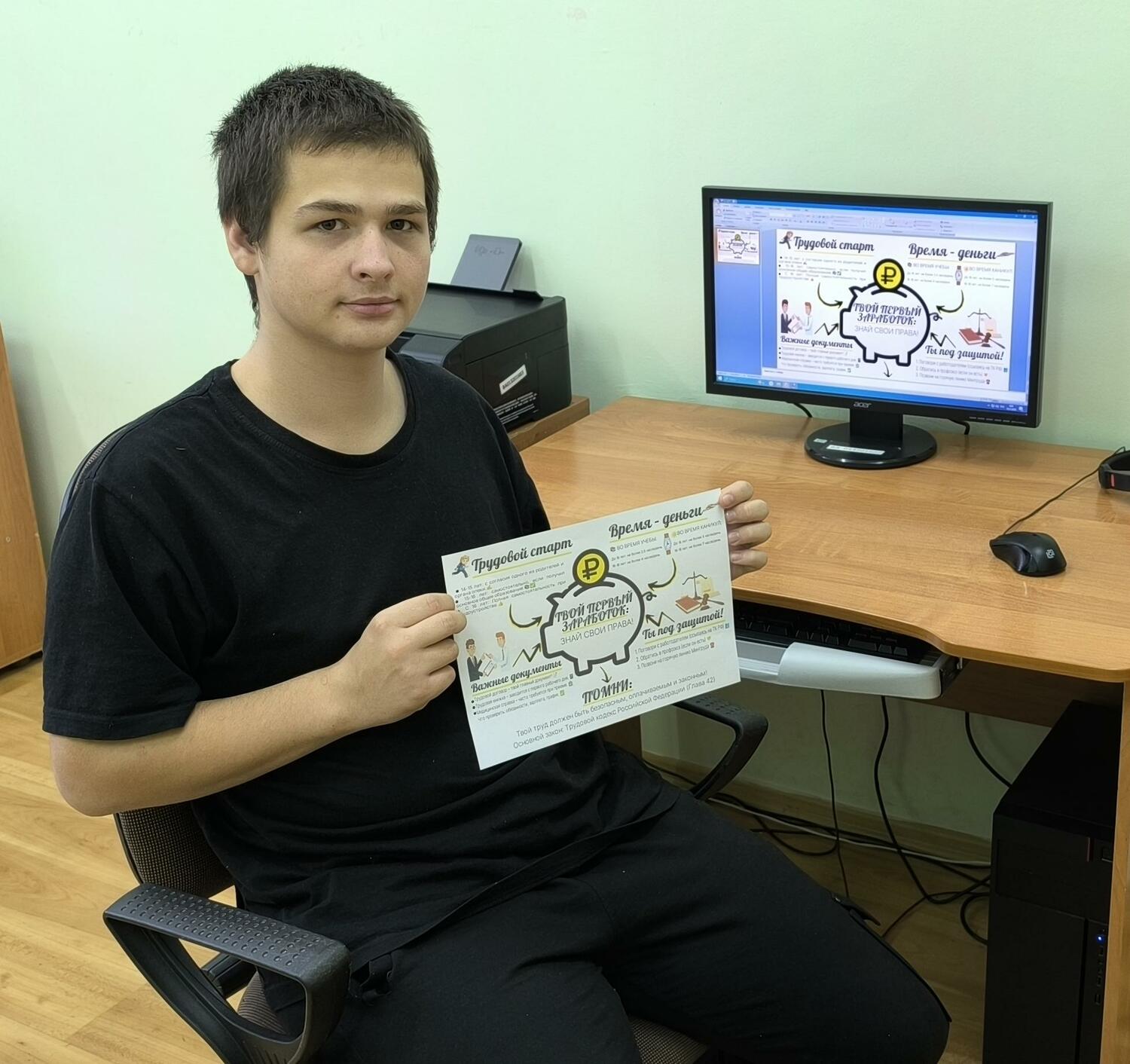 В этом году мы представляем работу, посвященную важной теме - "Твой первый заработок". Наш воспитанник, Артем Епанчинцев, проявил настоящий талант и усердие, создав вместе с социальным педагогом Кулаковым В.П. яркую и информативную инфографику.