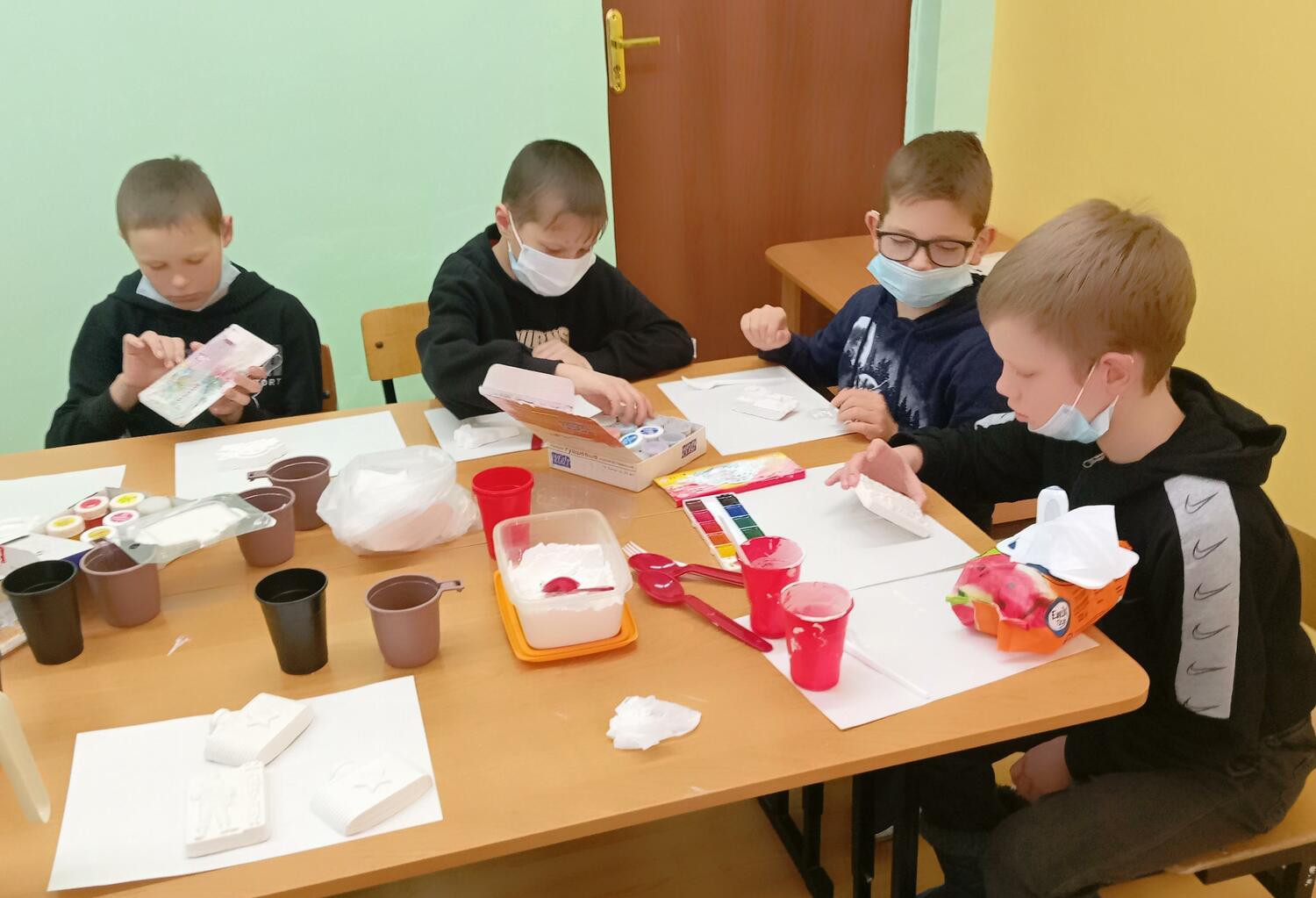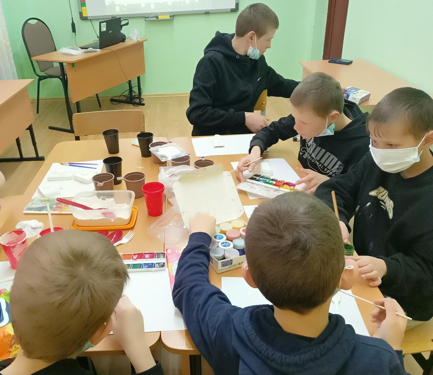 Пока гипс застывал, мы провели для ребят интерактивную игру-викторину «Защитники Отечества». Так мастер-класс стал не только творческим, но и познавательным.