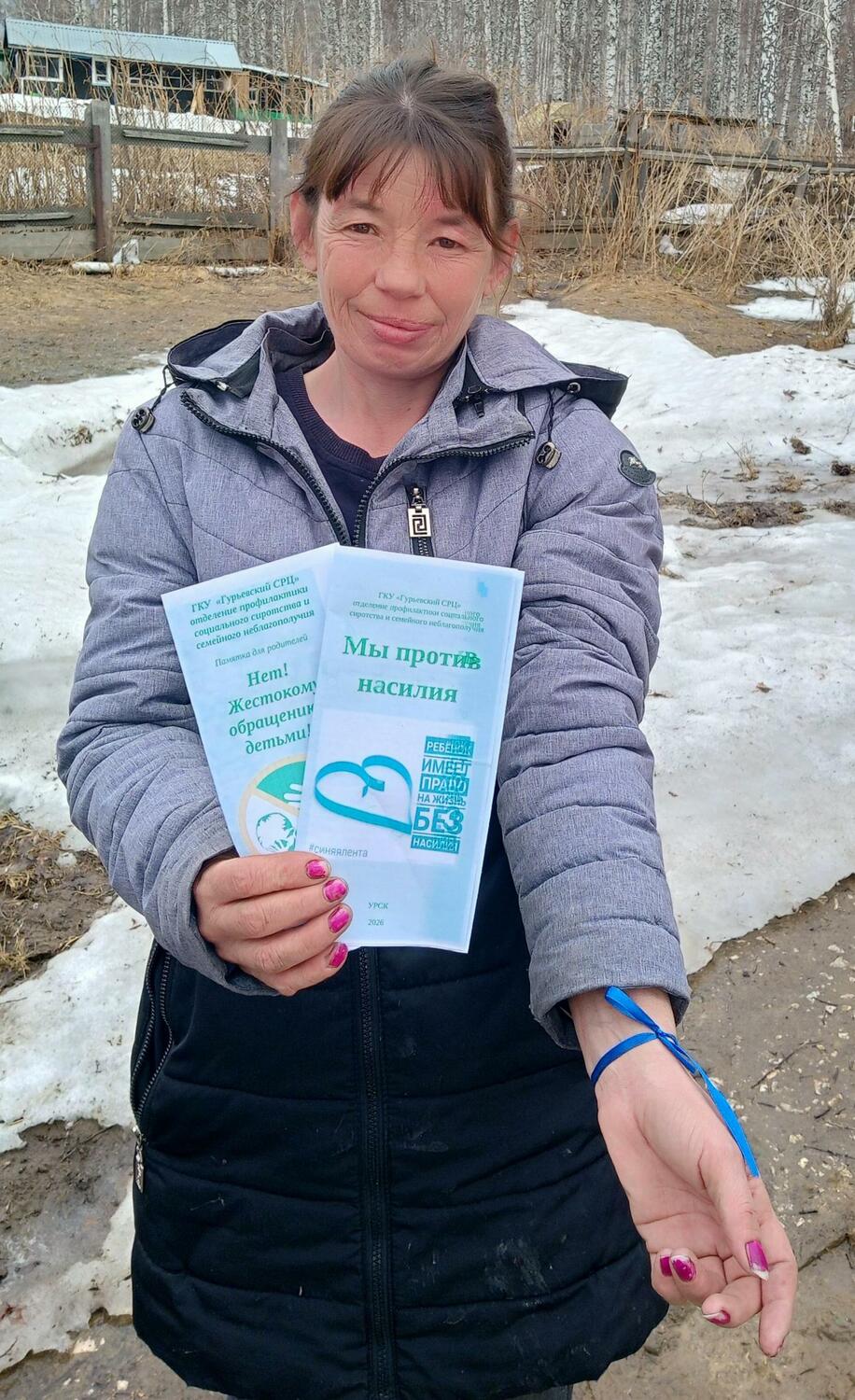 Синяя ленточка – это знак солидарности и решимости бороться с жестоким обращением над детьми. Это напоминание о том, что каждый ребенок заслуживает защиты, заботы и уважения. В ходе патронажа родителям были вручены информационные буклеты с важными посланиями: "Нет! жестокому обращению с детьми" и "Мы против насилия". Эти материалы призваны повысить осведомленность о проблеме, предоставить информацию о том, как распознать признаки насилия и куда обратиться за помощью.