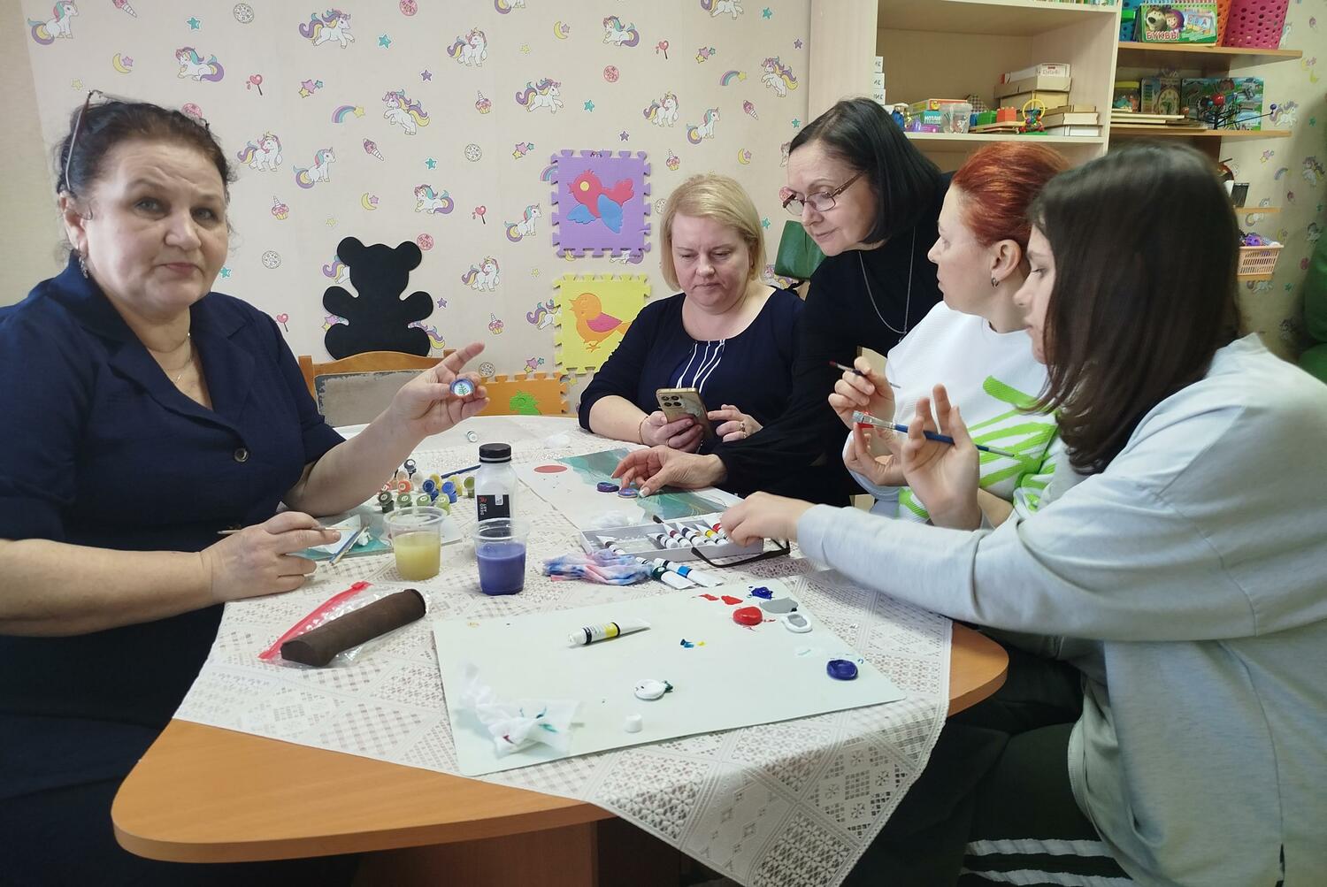 В пятницу 03 апреля в тёплой дружественной обстановке прошла встреча женщин, участниц клуба «Активистки». Темой встречи стало изготовление тревожных камней.