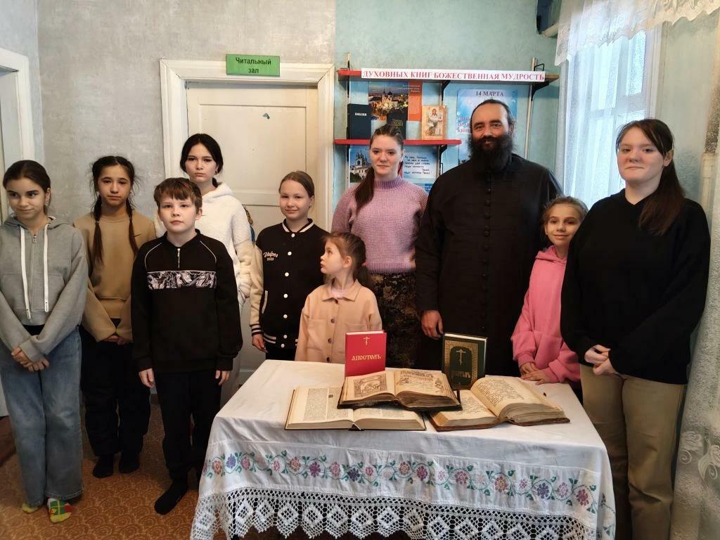15 марта для наших воспитанников был организован познавательный час «Живое слово народной мудрости» в поселковой библиотеке. Почетным гостем встречи стал протоиерей Андрей Марченко, настоятель храма в поселке Урск. Отец Андрей с теплотой и глубоким знанием поделился с ребятами бесценной информацией о духовных книгах и их огромном значении для развития разума и поиска пути к спасению души.